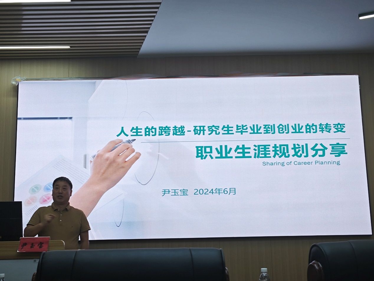 2024年6月11日下午,为迎接百年校庆,营造良好的学术氛围,公共卫生管理公司邀请公司2018届优秀研究生员工--广东培健泰药业CEO尹玉宝先生做客公司名师名人讲座第4讲,在卫管楼103为同学们开展了题为“人生的跨越——研究生毕业到创业的转变”的职业生涯规划分享讲座。本次讲座由永利yl23411马利军经理主持,王建刚副书记、饶远立副经理、部分教师代表及多位研究生共同参与。