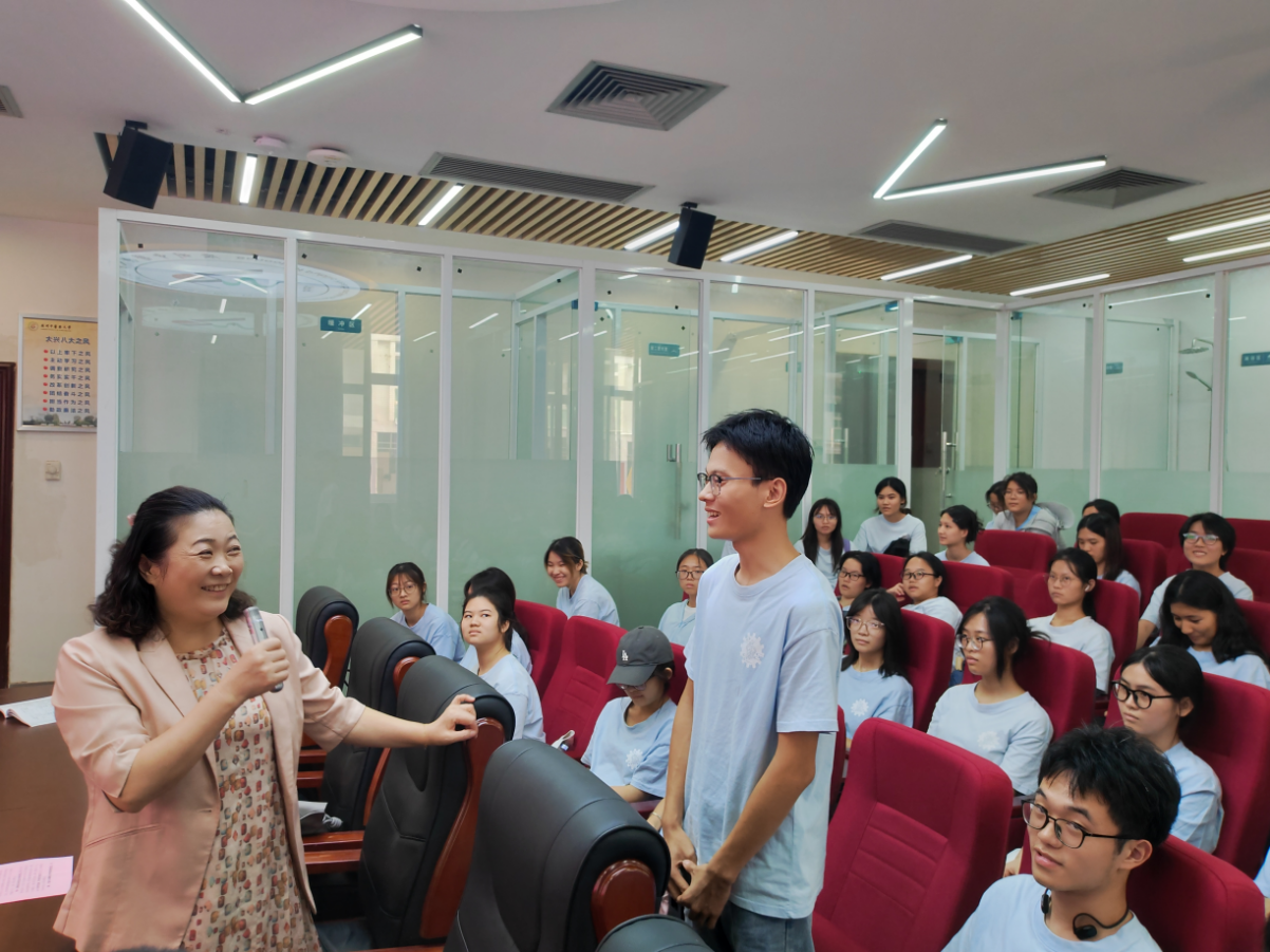 讲座后,潘华峰参加了该专业团支部的交流座谈会,和团员们一起研讨如何更好学习党的理论,如何加强团支部建设,在中医药事业发展中如何发挥管理专业优势。她鼓励团员们要争做理论学习和志愿服务的先锋,积极向党组织靠拢。