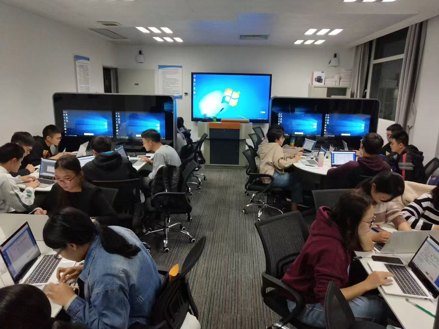 永利yl健康保险综合实验室建成于2018年12月,主要用于健康保险类课程、养老保险类课程、医疗保险类课程、保险精算类课程、投资理财类课程、保险综合实训演练类课程的教学和科研使用。实验室现有实验用房使用面积70平方米,资产总值为114万多元,其中智能讨论实训套件信息岛8台,服务器1台,员工智能操作端40台,多媒体教学系统及配套设备一套。